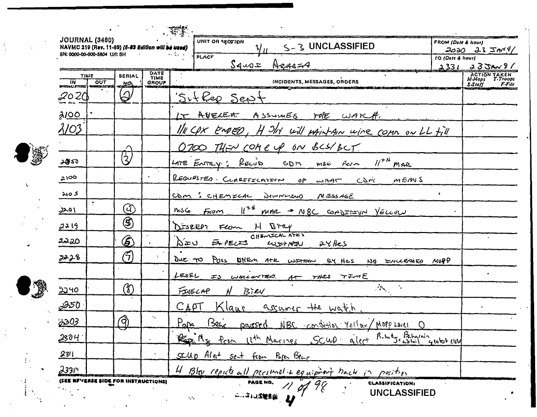 Folder Title = COMMAND CHRONOLOGY 1ST BATTALION 11TH MARINES JAN - FEB 1991