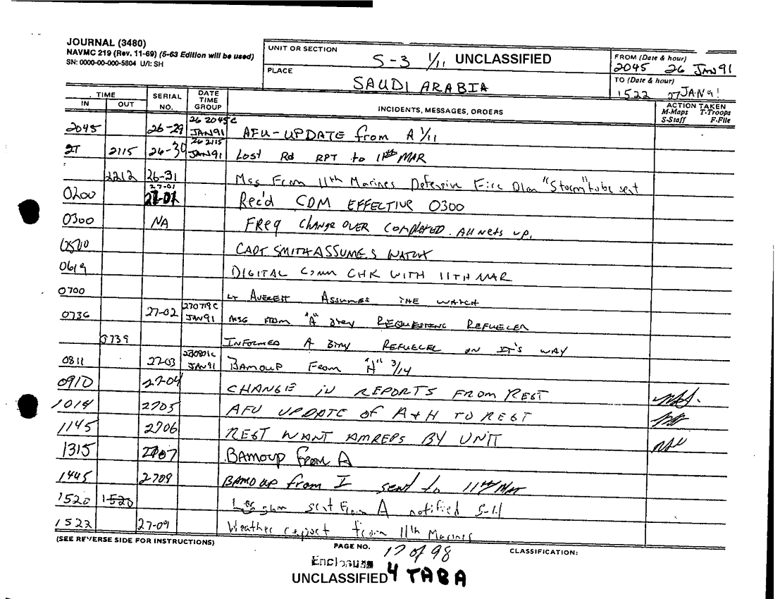 Folder Title = COMMAND CHRONOLOGY 1ST BATTALION 11TH MARINES JAN - FEB 1991