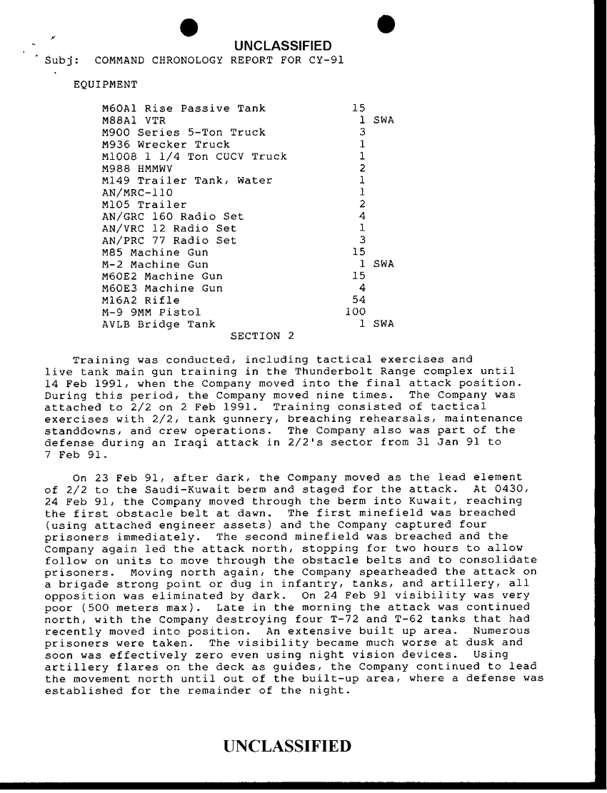 Document 5 f:/Week-41/BX600024/COMMAND CHRONOLOGY 8TH TANK BATTALION 1989 TO 1991/cmd chro rpt cy 91 3jan 92:11129615131123