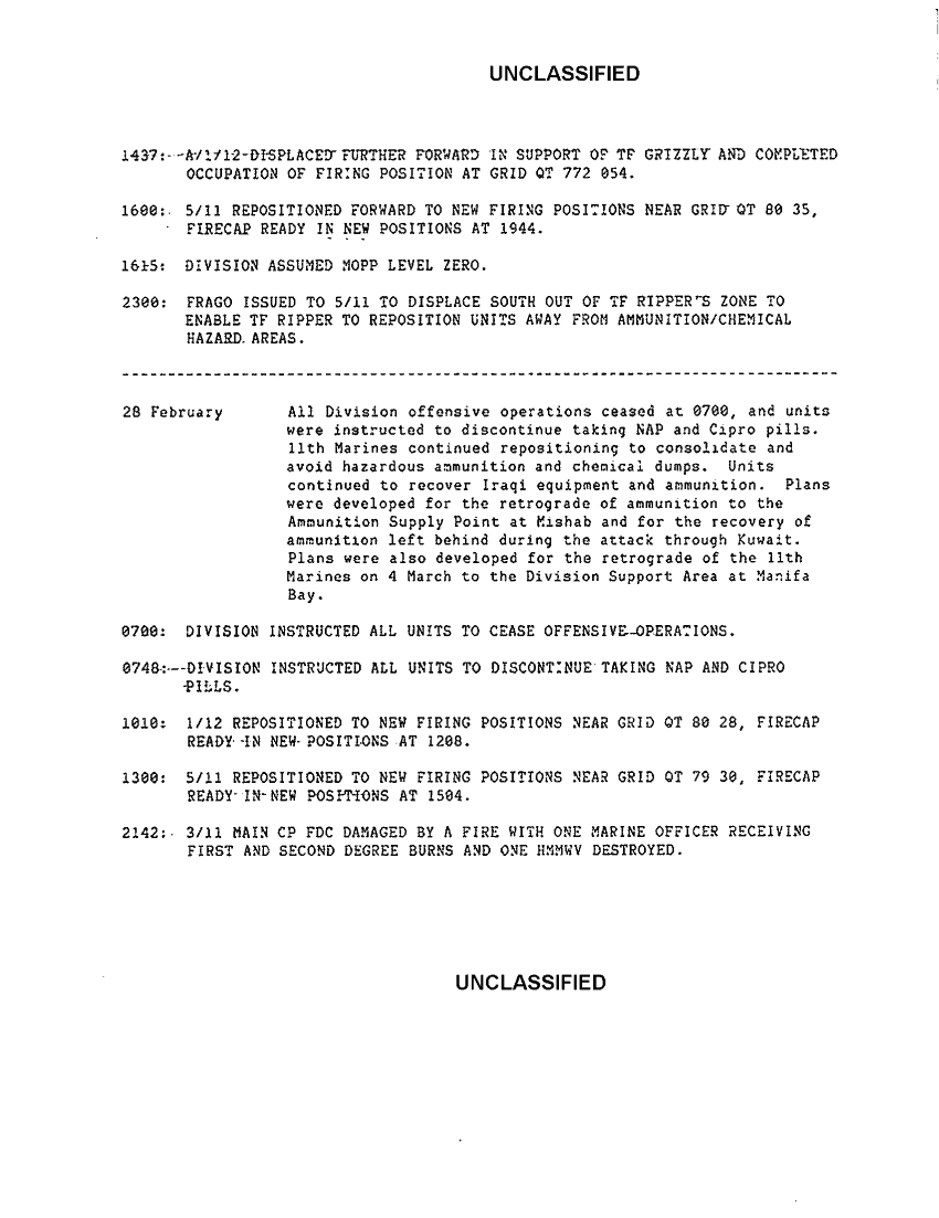 Document 16 f:/Week-42/BX600057/I MEF ACCOUNTS OF COMBAT ACTION/11th marines summary of significant events:1122961652212