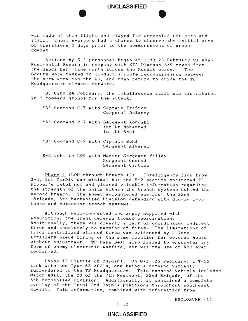 Document 19 f:/Week-33/BX600005/COMMAND CHRONOLOGY 1ST MARINES FEB 1991/narrative summary section 2:1217961001283