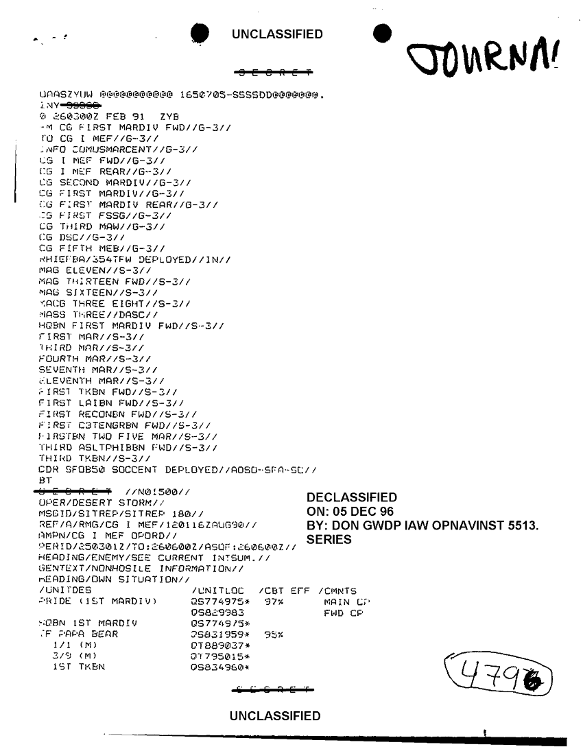 Folder Title = 1ST MARDIV JOURNAL ENTRIES 4686-4814 FEB 91 SEC 2 OF 2
