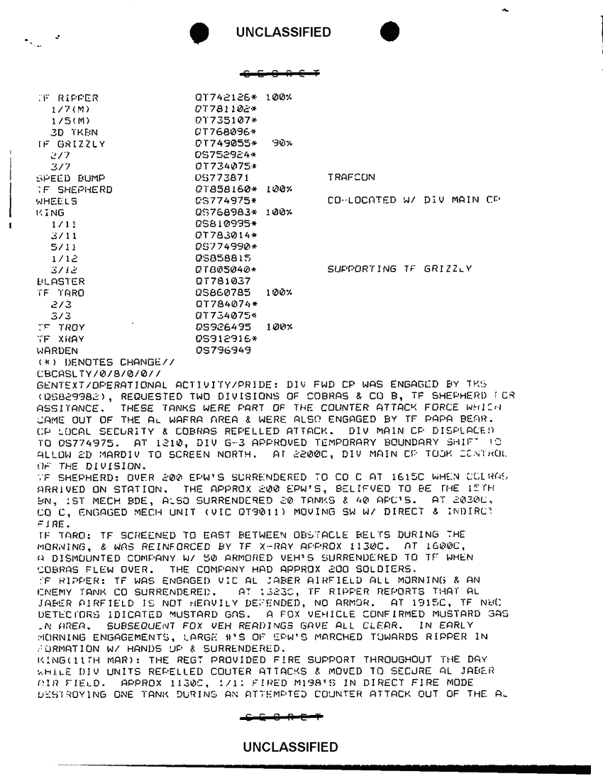 Document 4 f:/Week-43/BX600056/1ST MARDIV JOURNAL ENTRIES 4686-4814 FEB 91 SEC 2 OF 2/sitrep first mardiv 26 feb 91:1217961001316