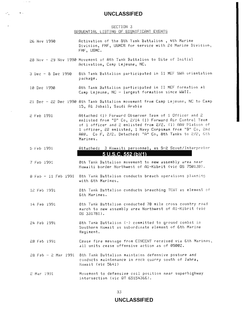 Subject = 8TH TANK BN COMMAND CHRONOLOGY NOV 90 TO MAR 91