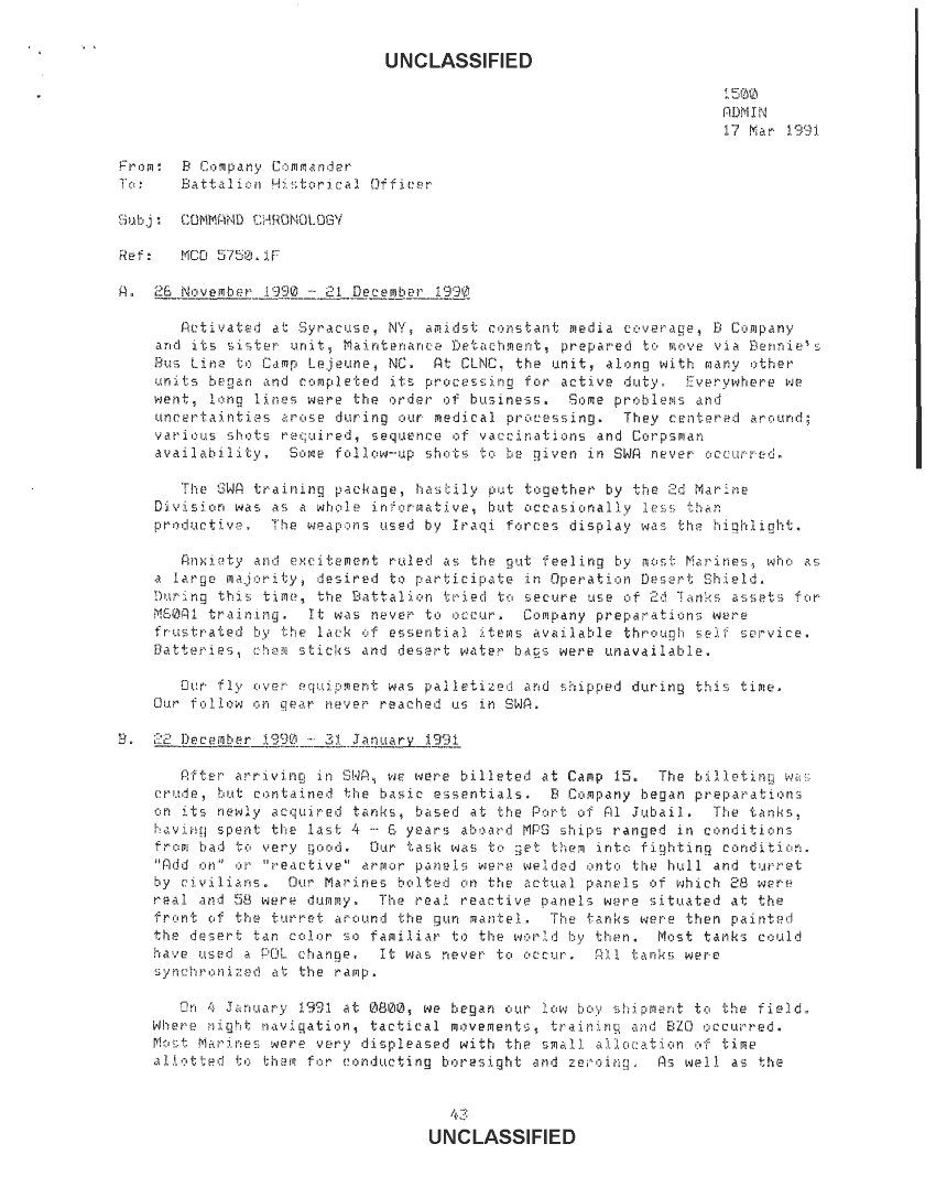 Document 60 f:/Week-34/BX600007/COMMAND CHRONOLOGY 8TH MARINES APRIL - JUNE 1990/8th tank bn command chronology nov 90 to mar 91:01029709504216