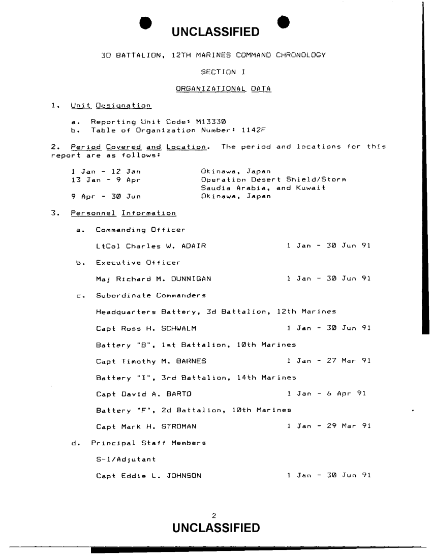 Document 12 f:/Week-38/BX600025/COMMAND CHRONOLOGY 3RD BATTALION 12TH MARINE REGIMENT JAN - JUN 1991/command chronology index:01029709504418