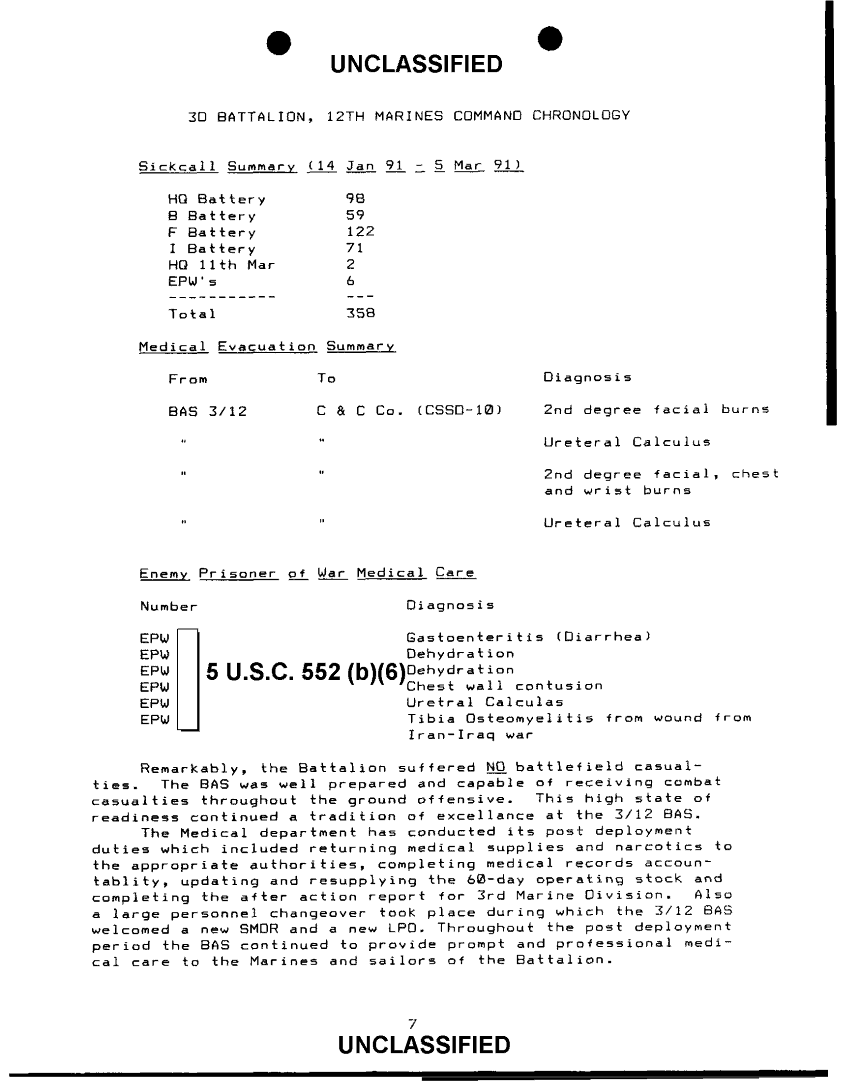 Document 12 f:/Week-38/BX600025/COMMAND CHRONOLOGY 3RD BATTALION 12TH MARINE REGIMENT JAN - JUN 1991/command chronology index:01029709504418