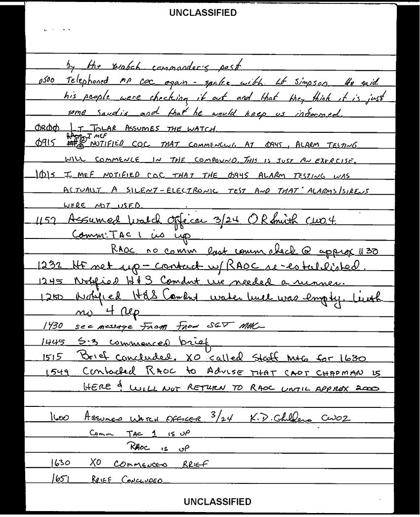 Document 103 f:/Week-35/BX600013/COMMAND CHRONOLOGY 3RD BATTALION 24TH MARINES JAN - MAR 1991 4 OF 4/handwritten log:0102970950272