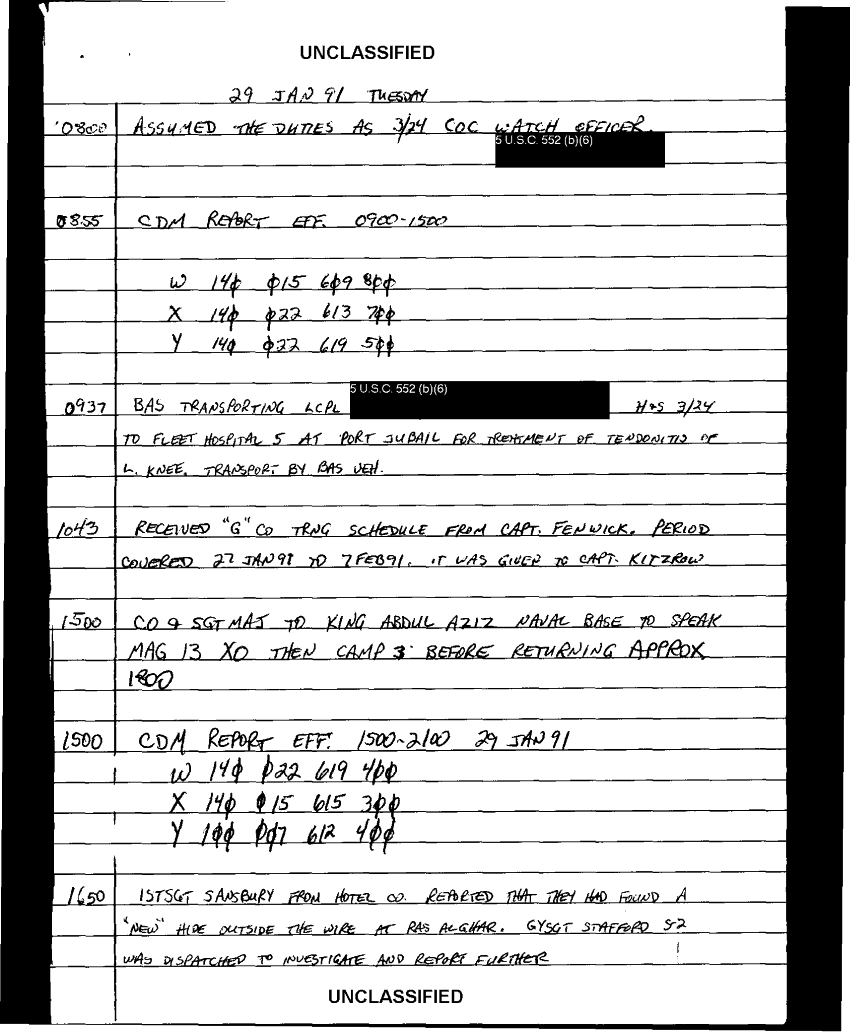 Document 103 f:/Week-35/BX600013/COMMAND CHRONOLOGY 3RD BATTALION 24TH MARINES JAN - MAR 1991 4 OF 4/handwritten log:0102970950272