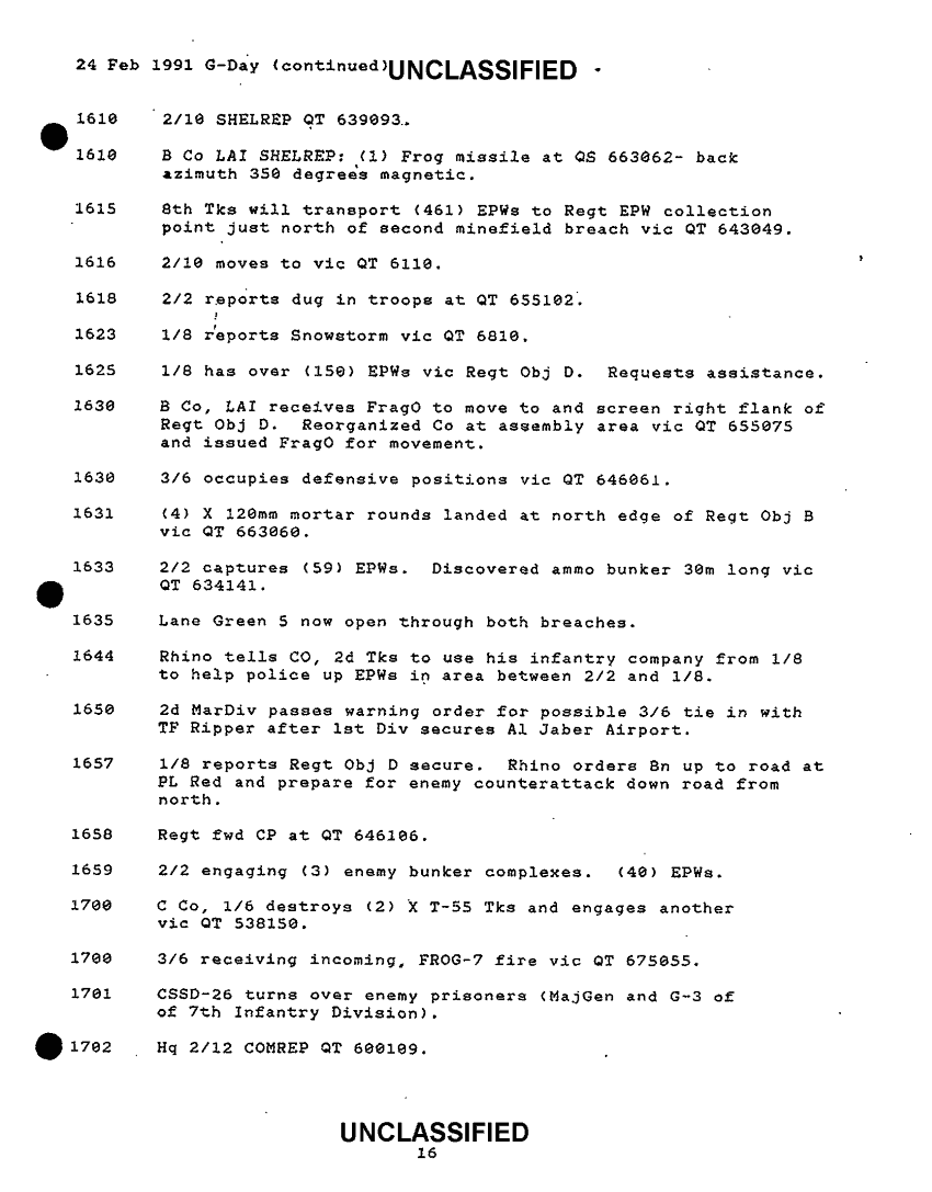 Document 47 f:/Week-51/BX600094/BATTLE ASSESSMENT DOCUMENTATION TABS B-M/6th marine regiment sequential listing of significant events:03249710491612