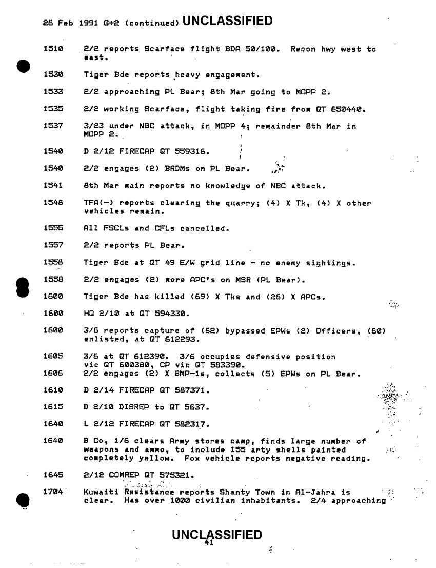 Document 47 f:/Week-51/BX600094/BATTLE ASSESSMENT DOCUMENTATION TABS B-M/6th marine regiment sequential listing of significant events:03249710491612