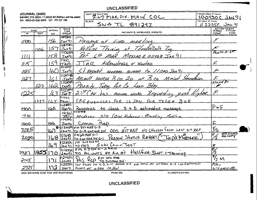 Subject = JOURNAL 2D MARDIV SUPPORTING DOCS SEP 90