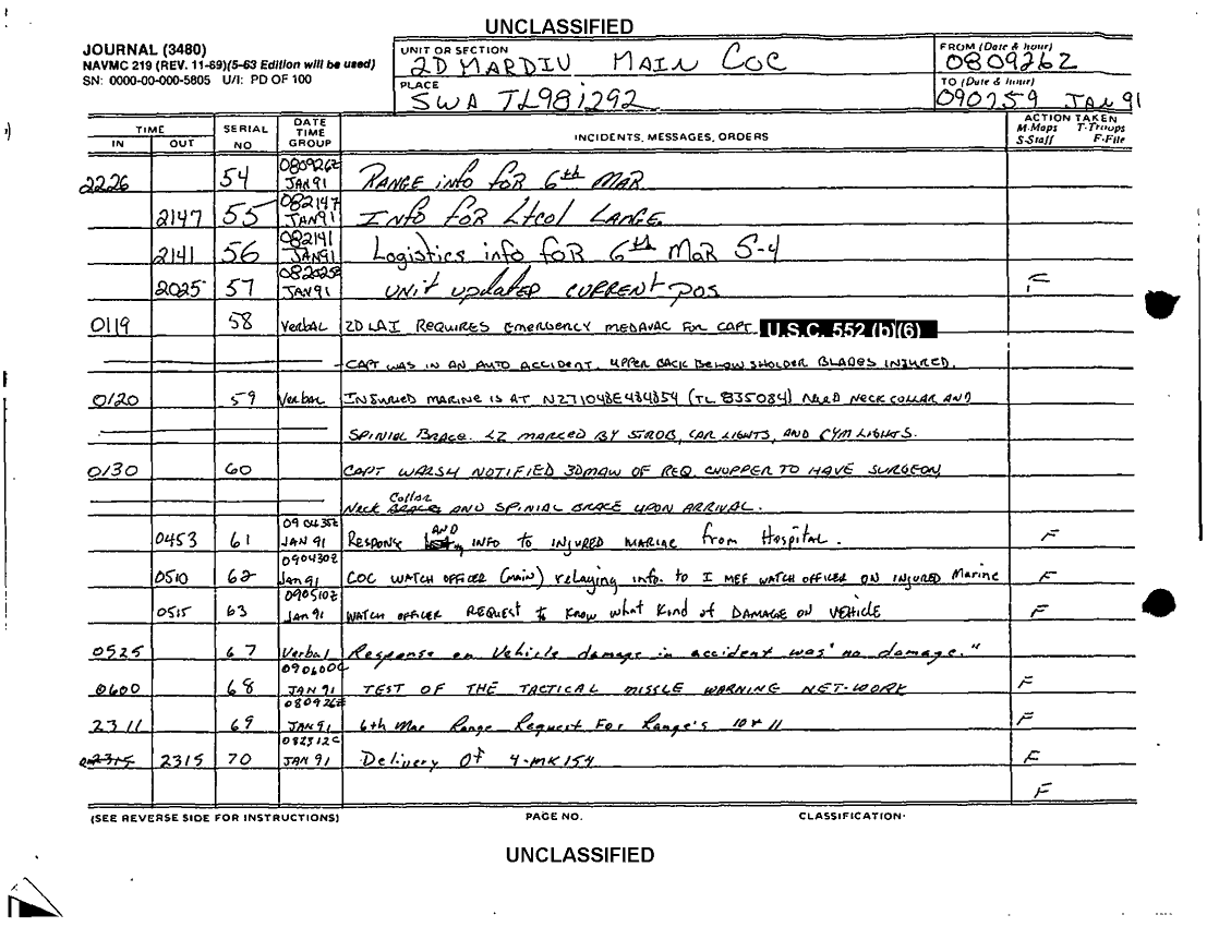 Subject = JOURNAL 2D MARDIV SUPPORTING DOCS SEP 90