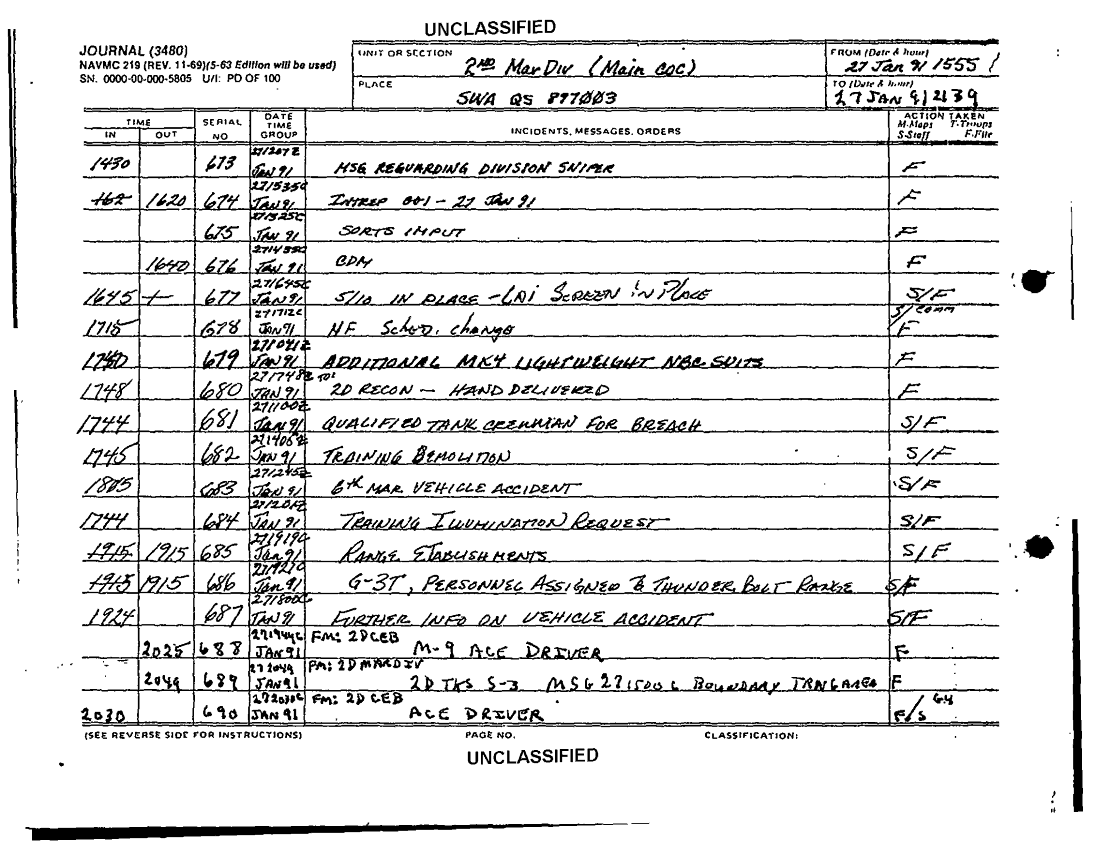 Subject = JOURNAL 2D MARDIV SUPPORTING DOCS SEP 90