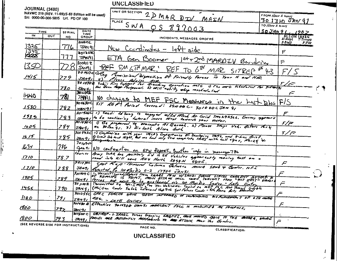 Subject = JOURNAL 2D MARDIV SUPPORTING DOCS SEP 90