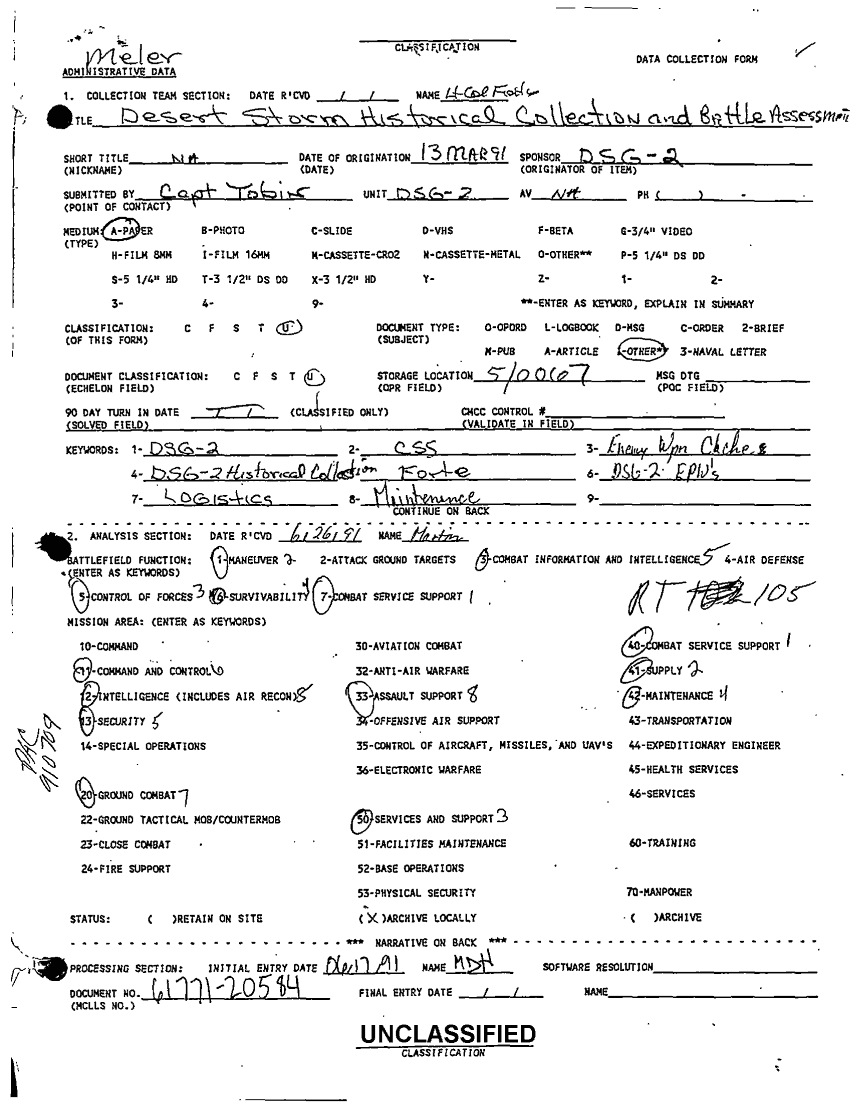 Subject = DESERT STORM HISTORICAL COLLECTION AND BATTLE ASSESSMENT 13 MAR