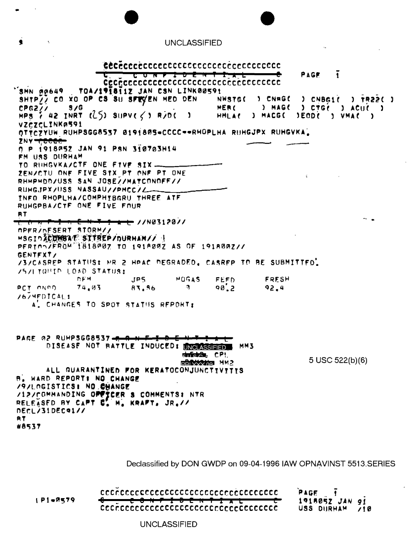 Document 1 f:/Week-33/BX300004/SSHIPS SITUATION REPORT USS DURHAM CN 998/uss durham sitrep 19 jan 91:0906961534516