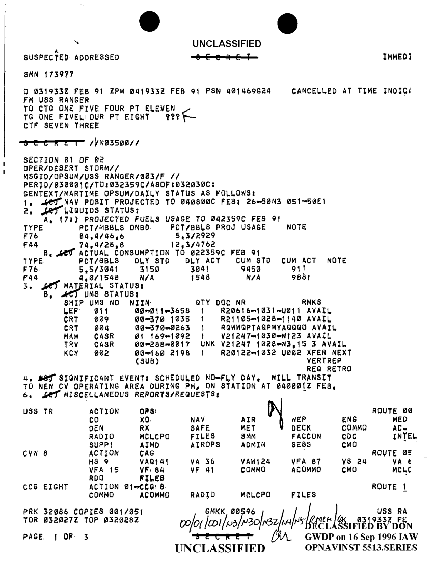 Document 4 f:/Week-33/BX300003/FOLDER 11 MESSAGE FILES FOR 29 JAN - 4 FEB 1991/opsum uss ranger 003 3 feb 91:0925961702163
