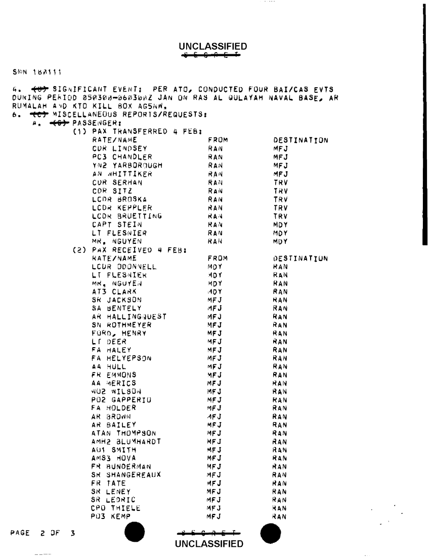 Folder Title = FOLDER 2 MESSAGE FILES FOR 5 FEB 1991 CNA 2758 1OF2