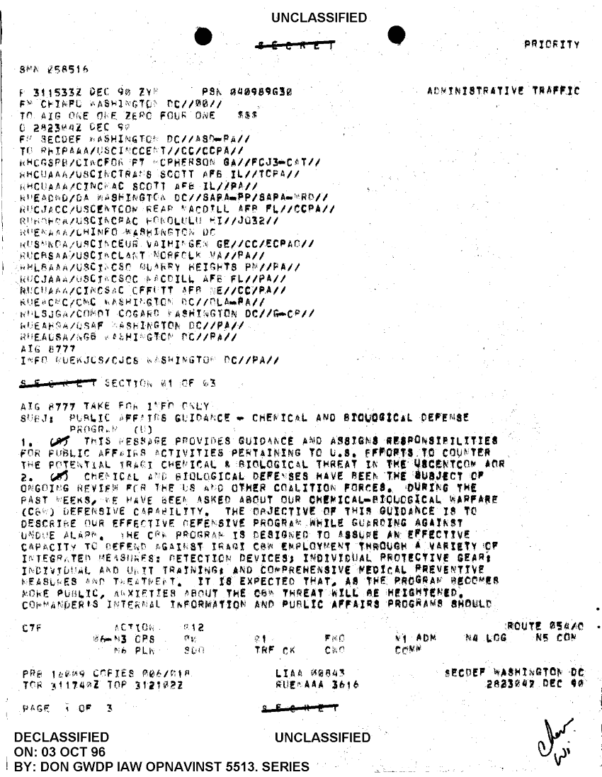Document 3 f:/Week-35/BX300027/CHEMICAL WARFARE MESSAGE FILES CNA 2772/public affairs guidance chem and biological def :1018961451283