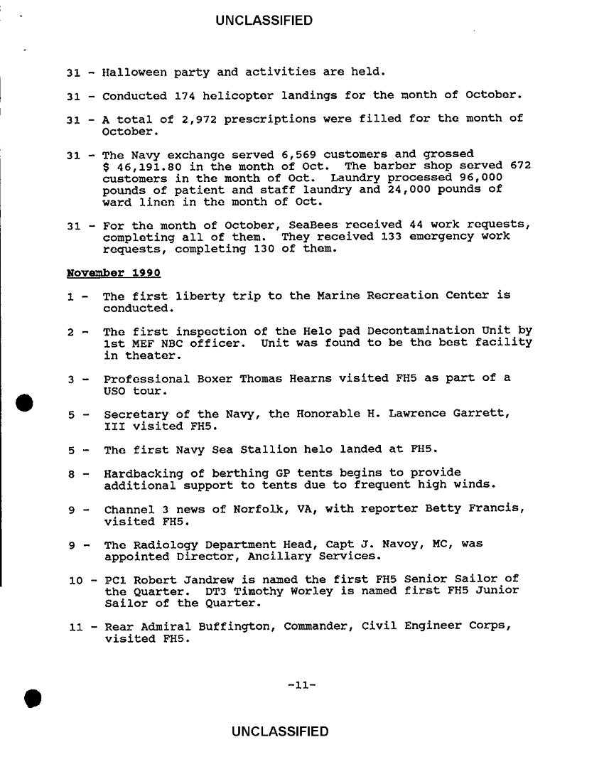 Document 19 f:/Week-36/BX300052/FLEET HOSPITAL WORKING PAPERS VARIOUS SOURCES CNA 2837/flet hospital five chronology 12 mar 91:1018961451358