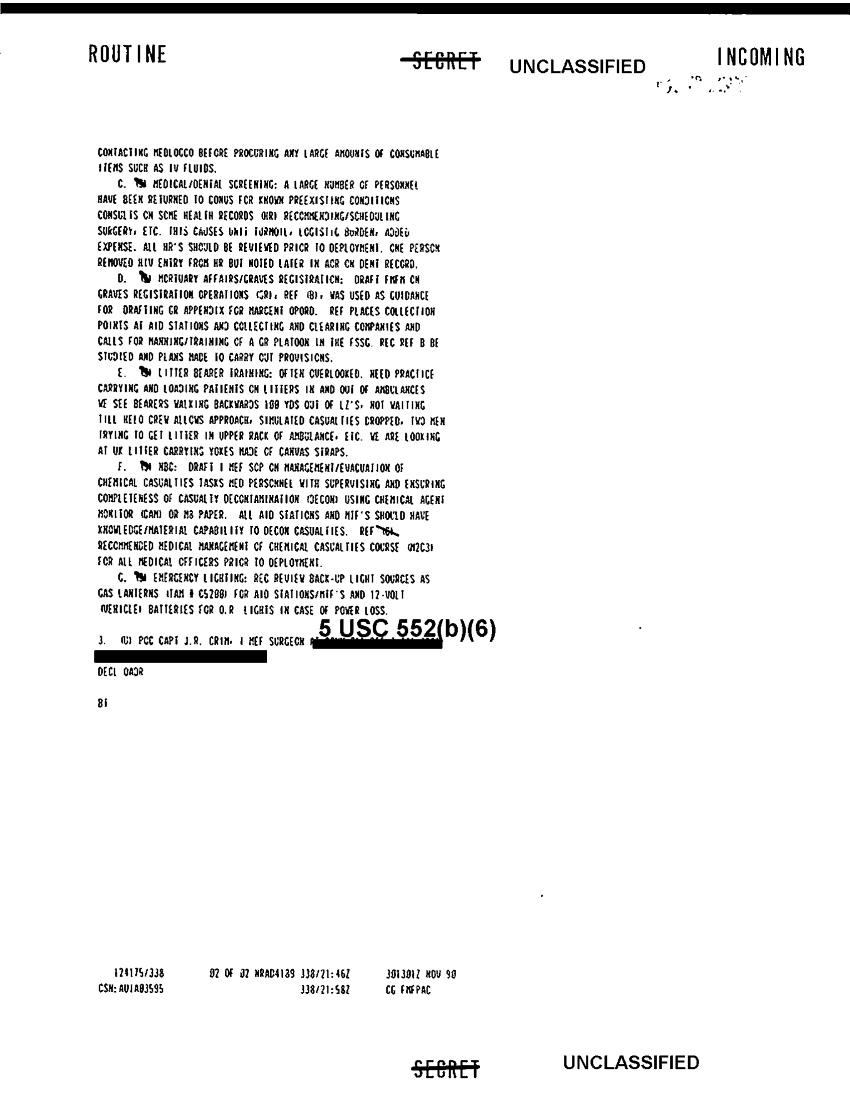 Document 2 f:/Week-35/BX300040/VARIOUS COMMANDS VARIOUS MESSAGES CNA 2927/medical lessons learned recommenadations:1025961319322