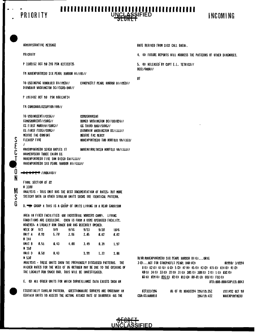 Document 3 f:/Week-41/BX300104/COMUSNAVLOGSUPFOR NAVY MEDICAL MESSAGE FILES 1990-1991 CNA 2910/disease surveillance diarrhea outbreak 26 aug 13:12179609575811
