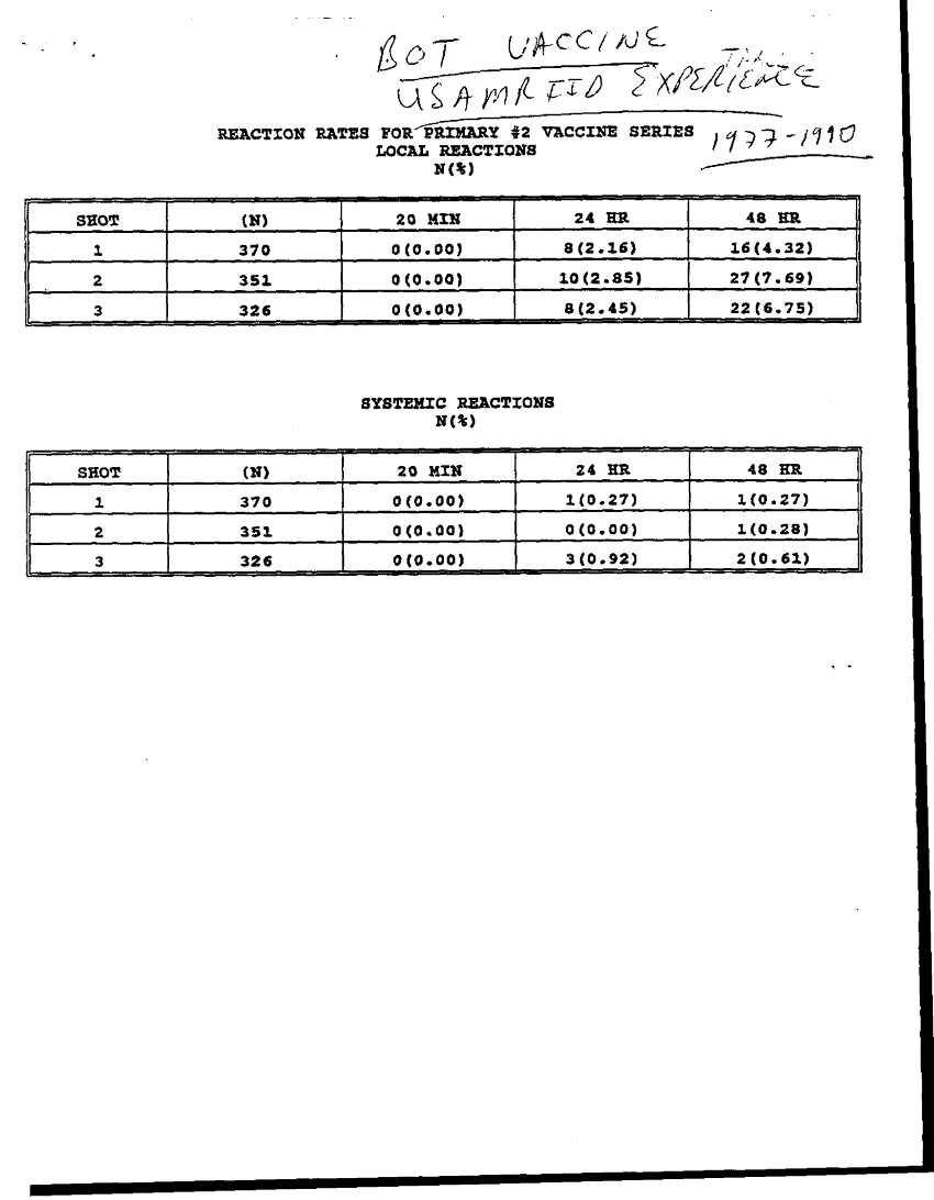 Document 8 f:/Week-36/BX003204/INFO PAPER PENTAVALENT ABCDE BOTULINUM TOXOID/reaction rates for primary 2 vaccine series:0920961557127