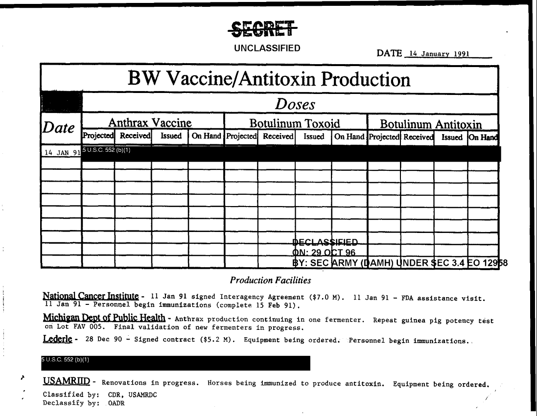 Subject = BW VACCINE ANTITOXIN PRODUCTION 14 JAN 91