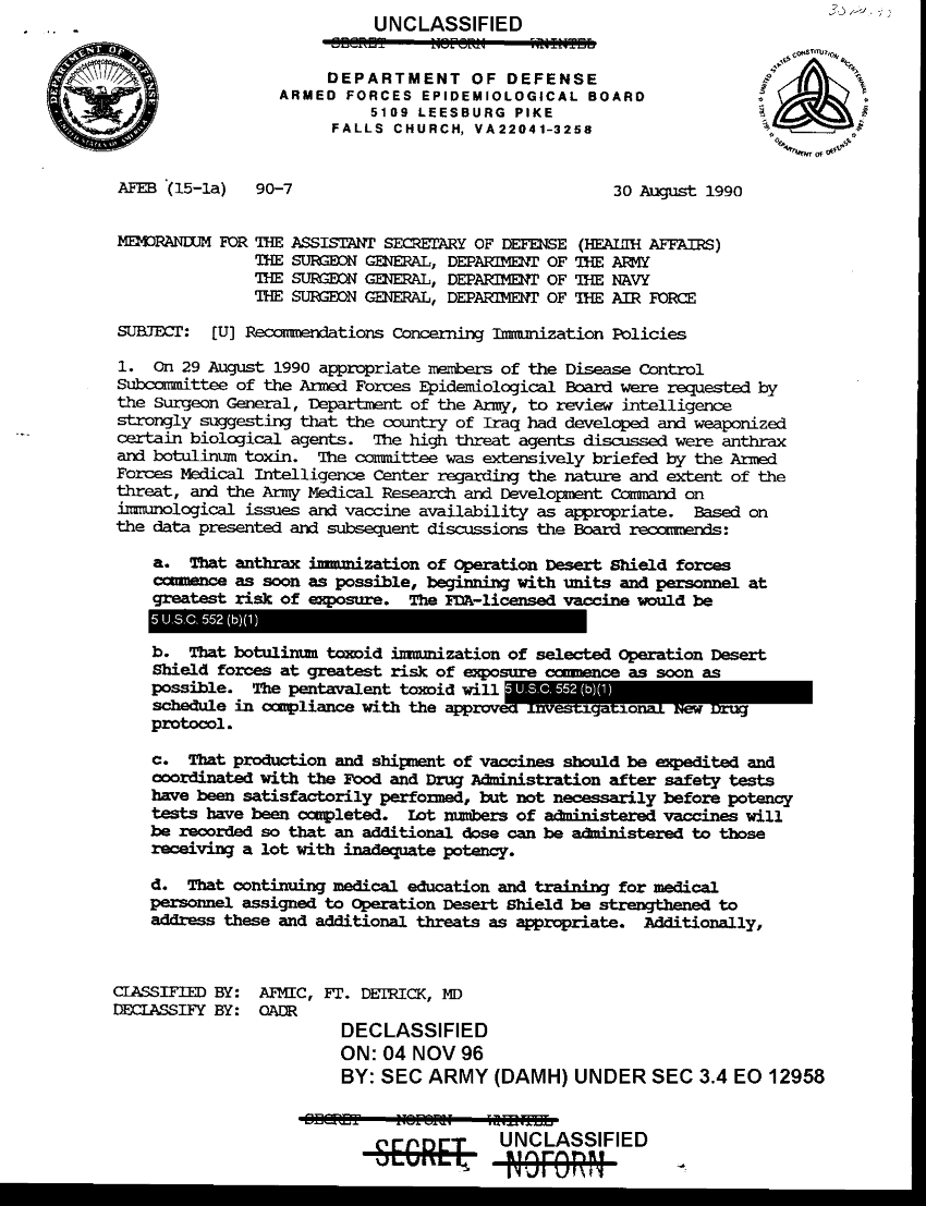 Subject = RECOMMENDATIONS CONCERNING IMMUNIZATION POLICIES