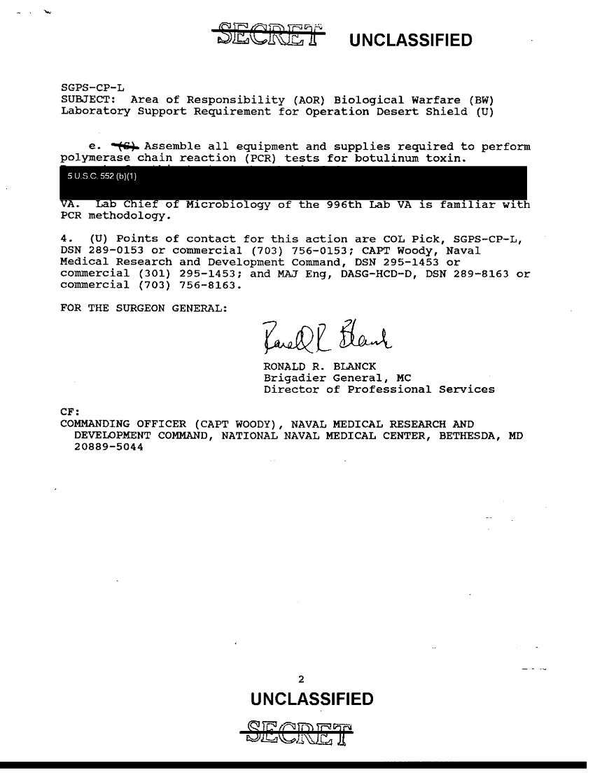 Subject = AOR BIOLOGICAL WAREFARE LAB RPT REQUIREMENT FOR