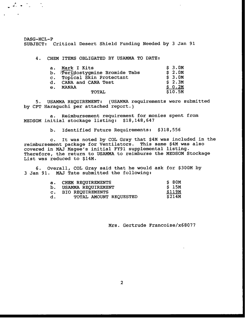 Document 14 f:/Week-36/BX003201/CRITICAL DESERT SHIELD FUNDING NEEDED BY 3 JAN 91/critical desert shield funding needed 3 jan 91:12249609313444