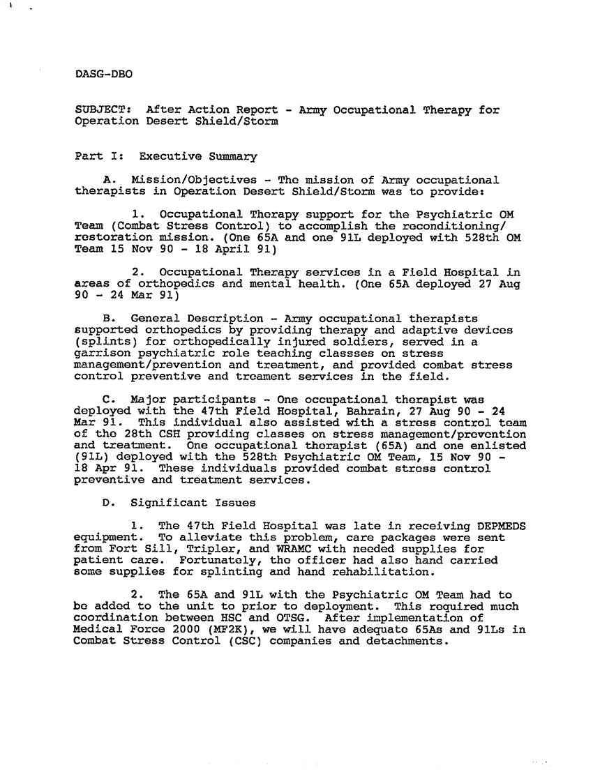 Subject = OFFICE OF THE SURGGEON GENERAL AFTER ACTION REPO