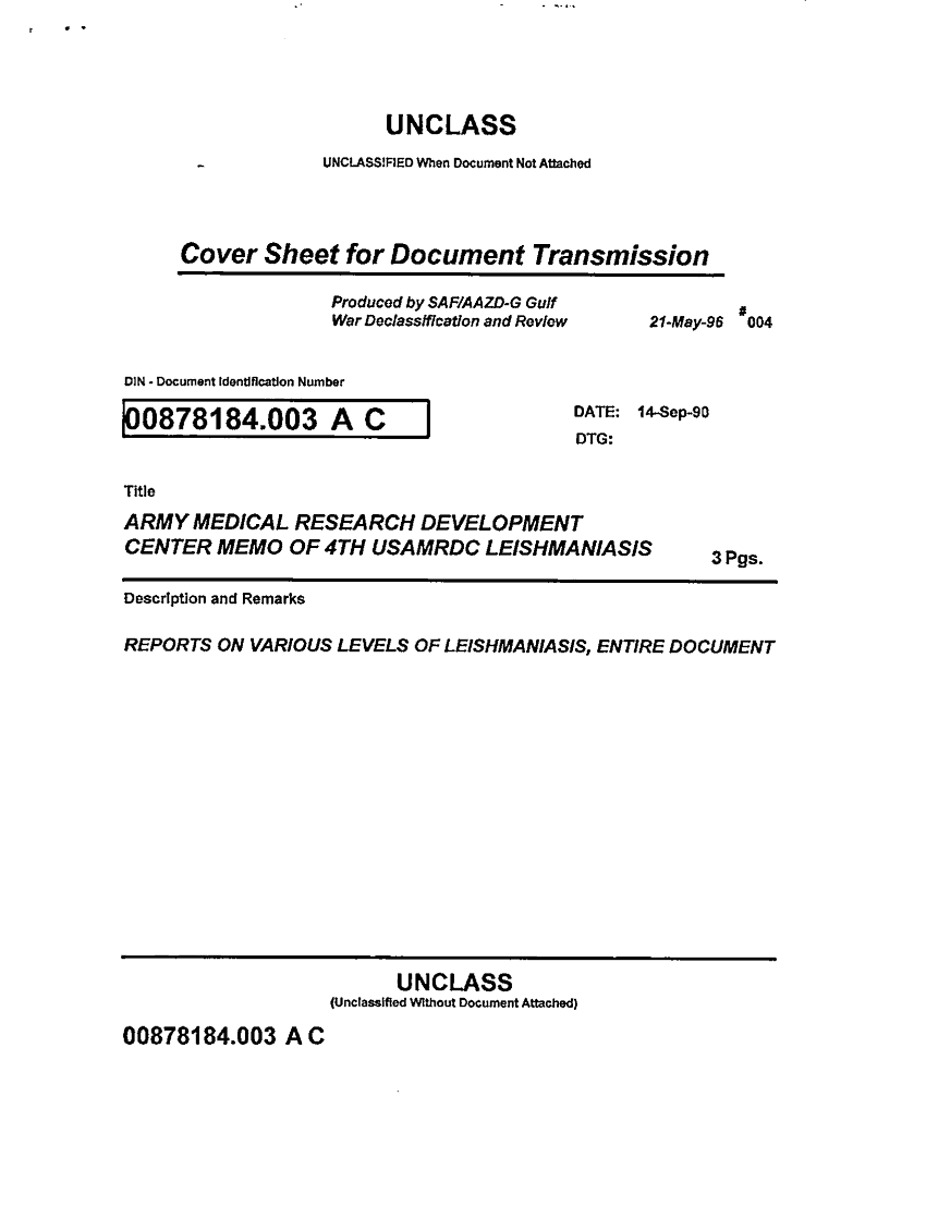 Document 4 f:/Week-36/BX003205/4TH USAMRDC LEISHMANIASIS VARIOUS LEVELS/army medical research development center memo:12249609314566