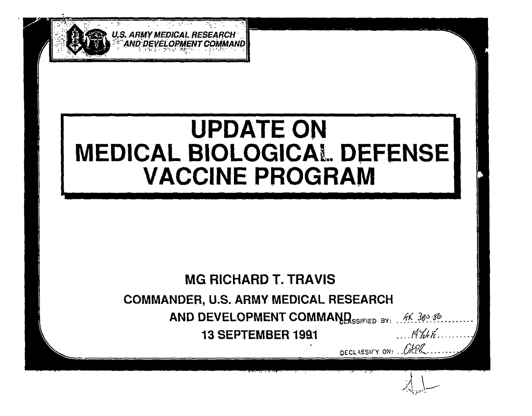 Folder Title = UPDATE ON MED BIO DEFENSE VACCINE PROGRAM BW VACCINE PRODUCTION UPDATE