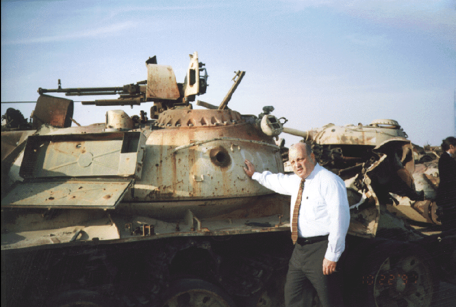 Figure 9. Dr. Rostker (Special Assistant for Gulf War Illnesses) at Kuwait's Iraqi Tank Yard