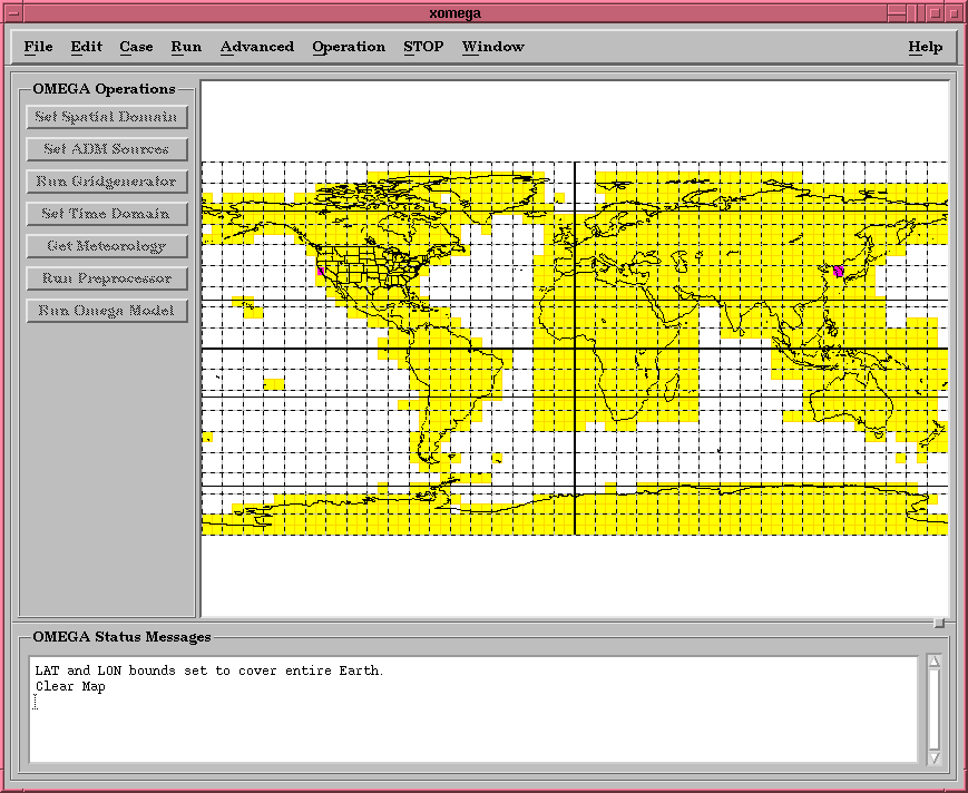 map of the world, an operator can use XOMEGA to set-up and start a simulation anywhere