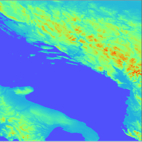 Figure 3. OMEGA 30 arc-second data for Bosnia-Herzegovina. This data was used to create the OMEGA grid seen in Figure 4.