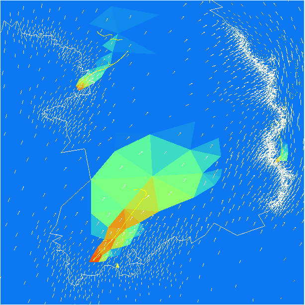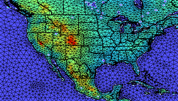Introduction and OverviewSAIC's Center for Atmospheric Physics (CAP) has developed a novel multiscale atmospheric simulation system for advanced, high-resolution weather forecasting and forecasting dosage and hazard levels due to the atmospheric release of aerosols and gases. The Operational Multiscale Environment model with Grid Adaptivity (OMEGA), has a horizontal grid resolution that ranges from 100 km to 1 km and a vertical resolution that ranges from a few meters to 1 km. OMEGA represents a significant advance in the field of weather prediction. Operational forecast models in current use are scale-specific. Their fixed rectangular grid structure limits the resolution of both the input boundary conditions and the resulting atmospheric simulation. The OMEGA model grid, which is unstructured in the horizontal, adapts to the underlying surface features and can dynamically adapt to atmospheric phenomena as they evolve. The major advantages of OMEGA over the current state-of-the-art include the ability to resolve the surface terrain down to scales of 1 km and along with that the local perturbations on the larger scale wind field. This local wind field perturbation is of extreme importance in determining the trajectory of an aerosol or gas release or plume. However, in order to calculate this local perturbation, it is important to include all of the physical parameters and processes which affect the local flow. These include not only the topography, but the land use, the land/water composition, the vegetation, the soil moisture, the snow cover (if appropriate), and the surface moisture and energy budgets. The inclusion of this additional physics, some of which is only appropriate because of the increased spatial resolution, represents an additional advance in the state-of-the-art. OMEGA uses a non-hydrostatic equation set to describe the dynamics. Cloud formation growth and precipitation processes are simulated by bulk-water parameterization schemes. A convective parameterization scheme is used in regions of coarse resolution where the potential exists for convection to occur. The model includes a radiation package which approximates the effects of the atmosphere and clouds on the radiation budget. OMEGA has an embedded Atmospheric Dispersion Model (ADM) that permits the simulation of aerosol or gas dispersion in the atmosphere using either an Eulerian (grid based) or a Lagrangian (particle or puff) scheme. ADM can provide accurate Lagrangian tracer capability specifically adapted to the atmospheric transport of hazardous aerosols and gases. ADM also permits the generation of thousands of pseudo-releases that can be post-processed to provide either "what-if" analyses or to provide information on the origin of a observed airborne hazard. OMEGA is more than an atmospheric forecasting and dispersion model; it is a complete forecasting and dispersion system. The OMEGA system consists of: