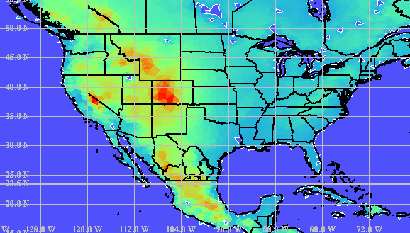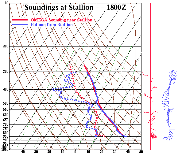 (e), soil temperature (f), soil moisture (g), and sea surface temperature (h) data. XGRID, the X-windows graphics post-processing and analysis tool developed for OMEGA, brings a wealth of functionality to the OMEGA modeling system. XGRID includes the ability to overlay OMEGA output on mapping data from the Digital Chart of the World. XGRID also permits the examination of vertical cross-sections of the OMEGA output, and the creation of standard skewT-logP diagrams. Using XGRID, the operator can examine both meteorological and ADM results. A scripting capability makes it easy to create routine products automatically, creating either Postscript or GIF files that can be spooled into a printer or incorporated into other products, or MPEG animations. Figure 6 provides examples of each of these XGRID capabilities.