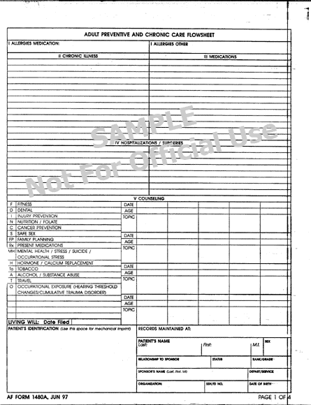 AF 1480A: Adult Preventive and Chronic Care Flowsheet (page 1), June 1997
