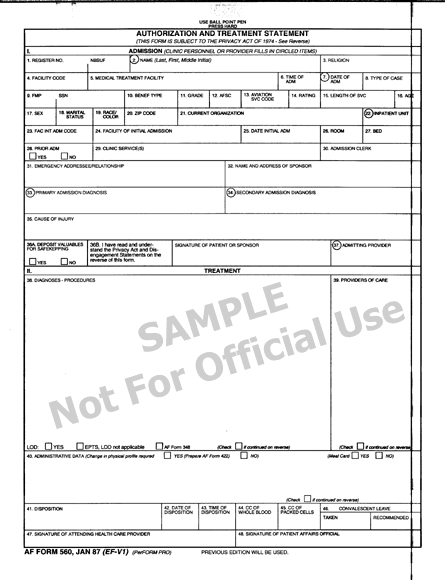 AF 560: Authorization and Treatment Statement, January 1987