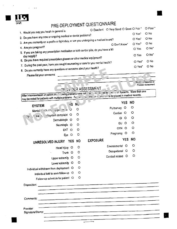 Revised Pre-Deployment Health Assessment Questionnaire (back), April 1997