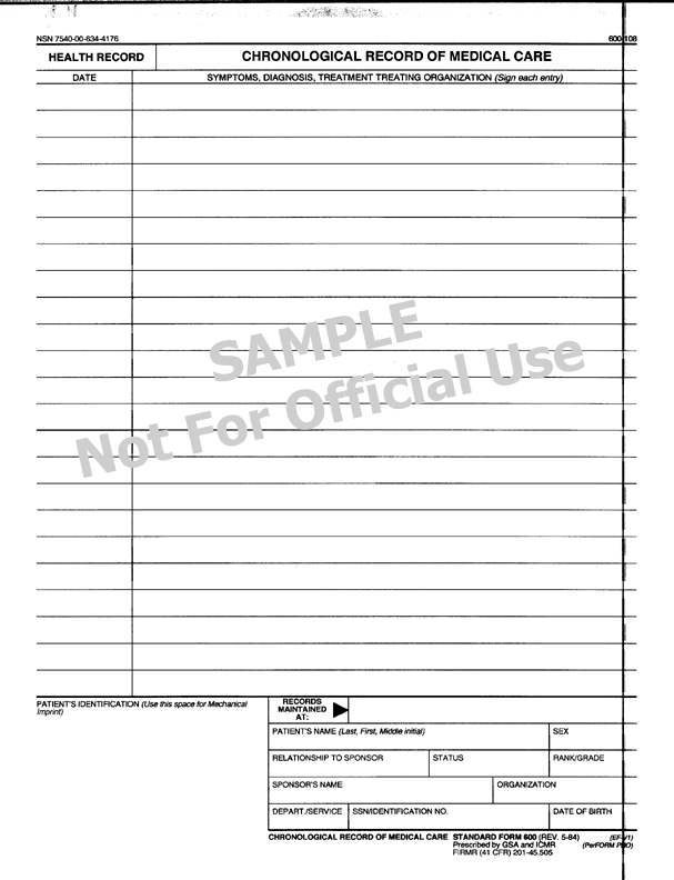 SF 600: Chronological Record of Medical Care, Revised May 1984