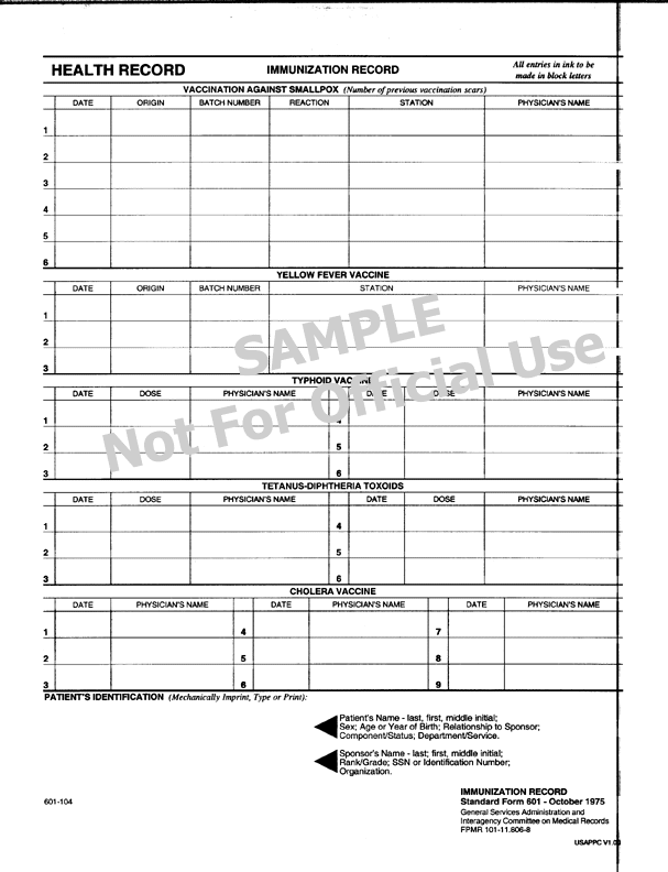 SF 601: Immunization Record, October 1975