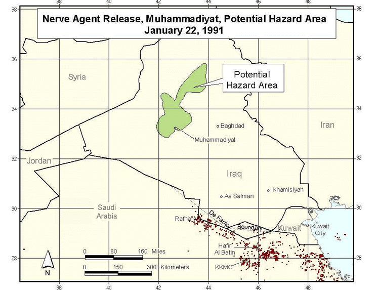 Figure 19. Nerve Agent Release, Muhammadiyat, Potential Hazard Area, January 22, 1991.
