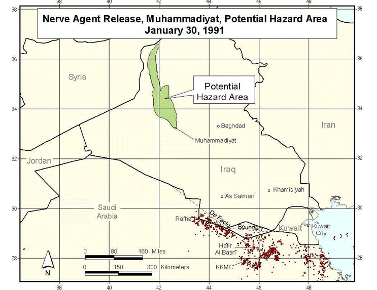 Figure 23. Nerve Agent Release, Muhammadiyat, Potential Hazard Area, January 30, 1991.