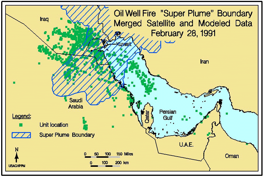 Figure 12: Troop Unit Locations vs. Smoke Plume on February 28, 1991