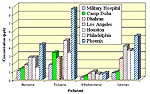The pollutant-specific concentration data consisted of sampling/monitoring results from fixed site sampling locations in Kuwait and Saudi Arabia. Sampling site locations were established based on their proximity to where a majority of US troops were located for extended periods of time during and after the war, and included areas where the smoke was considered heaviest. Sampling was conducted at seven major troop sites and three non-troop sites (i.e., US Embassy in Kuwait, the Ahmadi Hospital, and Camp Abdaly Red Cross/Red Crescent Refugee Center).[155] A sampling point location map is presented in Figure 8. US EPA standard methods were used in measuring pollutants. A description of these methods can be found in the USAEHA Final Report.