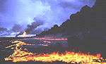 The extent of the plume height and its lateral spread and migration was a function of several factors; these included: 1) the extent of damage to the well heads, 2) the pressure inside the well, 3) the exit velocity of the jet, 4) wind speed and direction, and 5) the rising hot air. High-pressure wells produced high-pressure oil jets (see Photo No. 1). In more than 40% of the cases, smoke was emitted vertically. In cases where the well heads were completely blown out, the formation of flickering fireballs was observed at the top of the head (see Photo No. 2). In such cases, the smoke plume was observed to drift closer to the surface.[101]